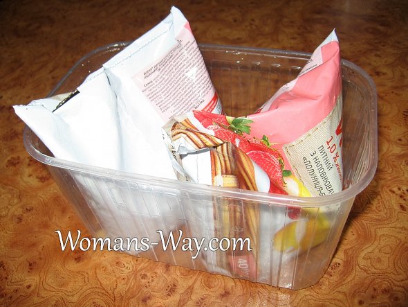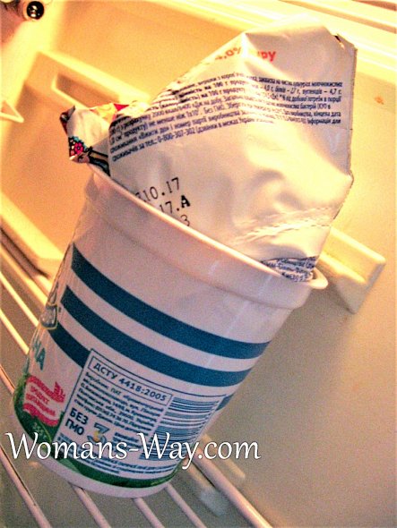 Не торопитесь выбрасывать пластиковые стаканчики из-под сметаны или йогурта. В них можно удобно разместить уже открытый полулитровый мягкий пакет с кефиром, ряженкой, йогуртом или сметаной.
