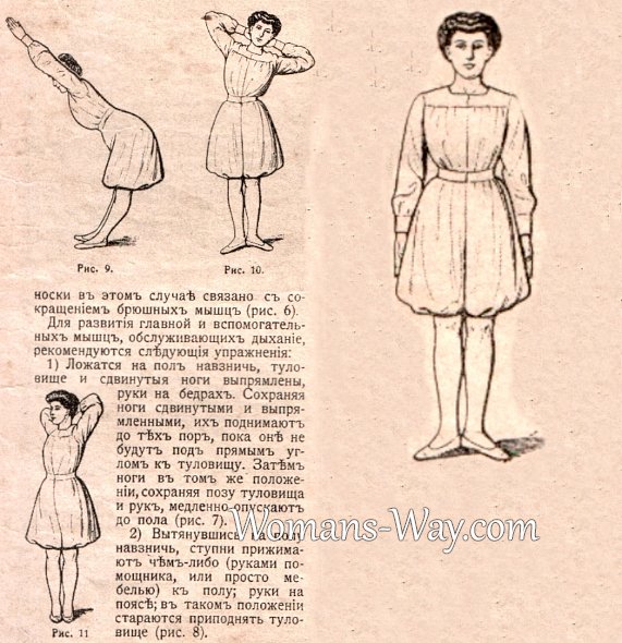 Оказалось, основа такой гимнастики была заложена давно, а значит и эффективность такого лечения проверена годами. Судя из изложенного наиболее активные члены общества, включая и представительниц слабого пола, уже тогда интересовались подобными лечеными практиками и старались придерживаться здорового стиля жизни. Образ томной бледной барышни, уединившейся в собственном будуаре и вздыхающей над французским романом о грезах любви, уступал вот таким представительницам прекрасного пола.